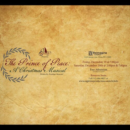 Celebrate the birth of the King with us this holiday season! Experience the joyous and bright writing of Penny Moncrief, brought to life by the wonderful cast of "The Prince of Peace: A Christmas Musical". This production is brought to you FOR FREE by EagleTree Productions, in partnership with Reimagine Church.